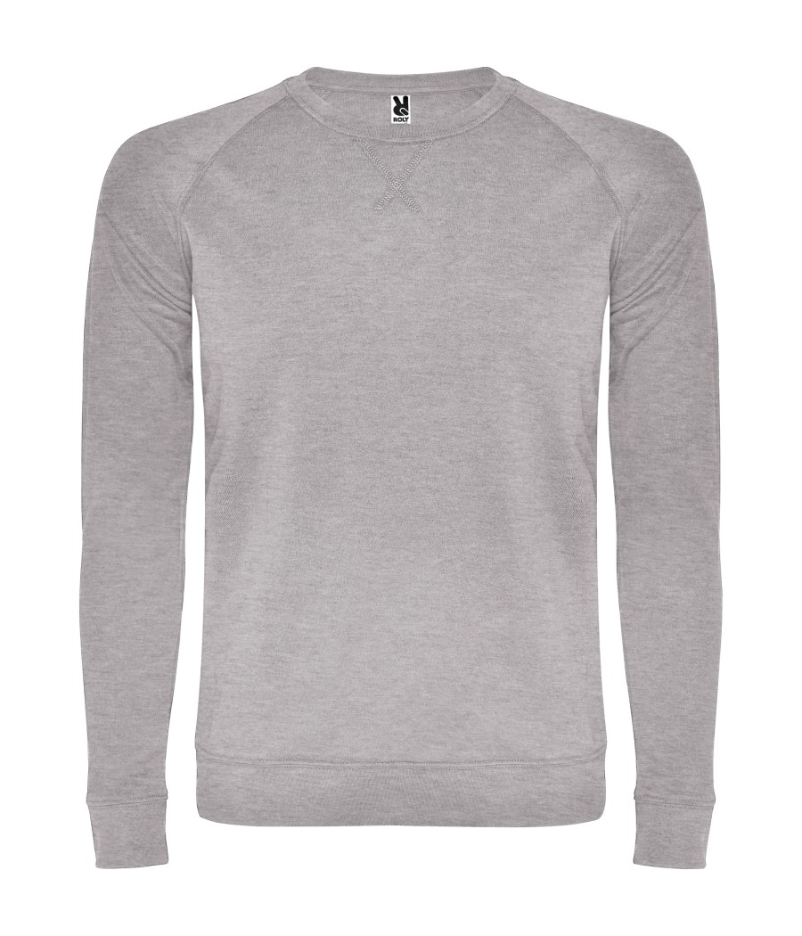 Bluza z raglanowymi rękawami. Prążkowane mankiety i dół bluzy 1x1. Okrągły dekolt. Wzmocnione, kryte szwy na karku 2x2. Ozdobne przeszycie pod szyją.
