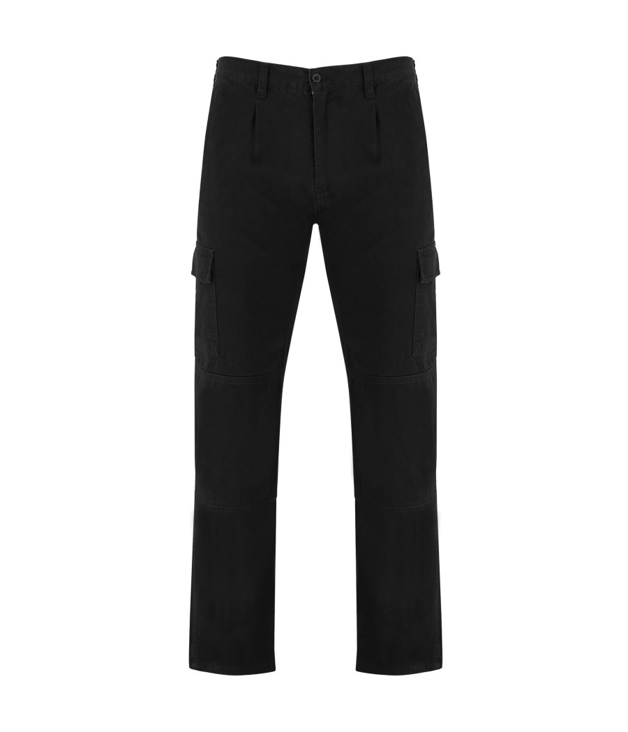 Długie spodnie z odpornej tkaniny bawełnianej: 1. Regulowany elastyczny pas z tyłu. 2. Dwie kieszenie z przodu. 3. Tylna kieszeń z klapką i zapięciem na rzep. 4. Dwie boczne kieszenie z klapką i zapięciem na rzep. 5. Podwójna tkanina na pośladkach. 6. Podwójna tkanina na kolanach.